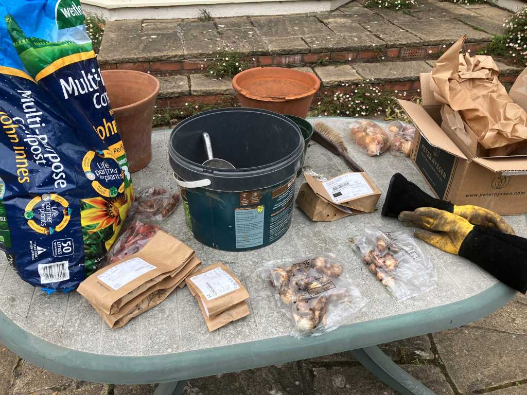 Back in October I managed to plant some bulbs. I had ordered a collection of miniature daffodils to grow in pots. The selection included Snipe, White Petticoat, Toto and a few tulips: Hilde and Turkestanica.