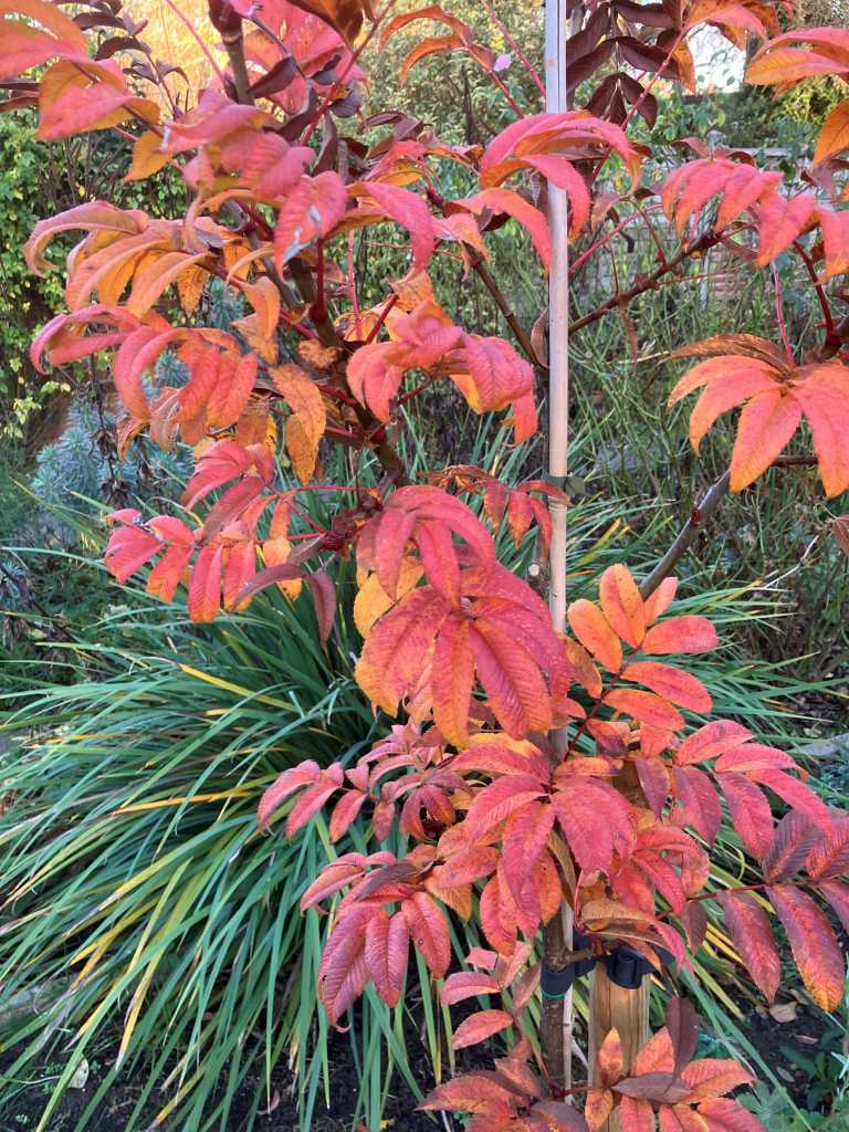 The new rowan tree has done well. It was watered weekly over the dry summer and although the height is around 1.5 metres the glorious display of leaves gives a good sign of things to come.