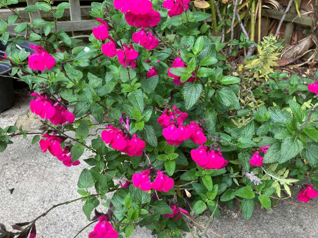 Salvia Blackcurrant Sage (Salvia microphylla) did well this year. I was brave enough to cut it back hard after winter and it did keep it from becoming too leggy.