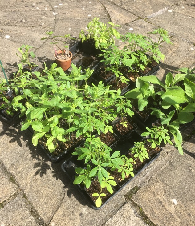 These are the trays of annuals that I have left to plant out. That’s my gardening job for the weekend but I will save it for tomorrow when the heat is less intense. I have cleome, zinnia, a few nicotiana and other assorted bits and pieces. They are going to fill the gaps where the agastache and pennisetum villosum didn’t over winter. I also have dead heading of roses and picking of sweet peas to do – sounds like a perfect summer.