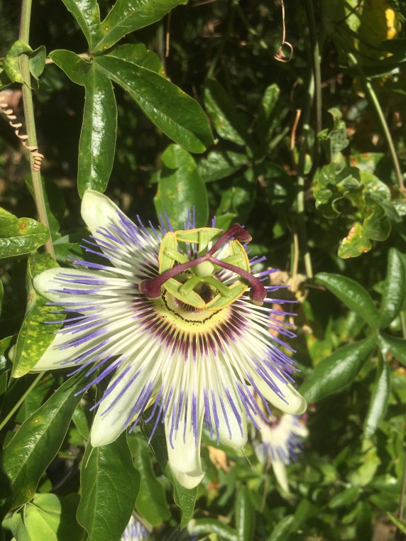 Passion flower is VERY rampant! Where it was grown for fruit production around Beverly Hills and the western Los Angeles area a very long time ago, it STILL sometimes comes back from the roots. Fortunately, it does not get ‘too’ big. (Of course, that is relative.) It would likely die if we pulled it up more regularly as it appeared, but because we neglect it, it keeps coming back like it has since the homes were build in the 1930s!