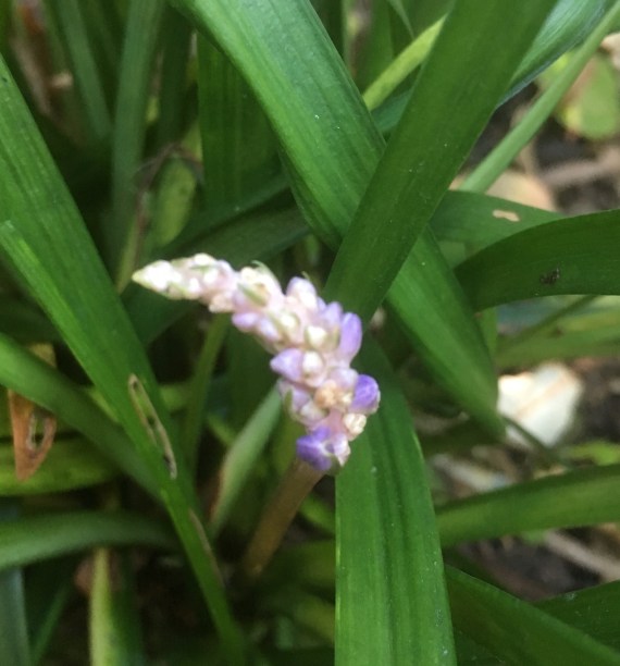 A tiny spire of lirirope muscari ‘Big Blue’. Not quite living up to it’s name yet. It has been three years in development. Billed as a perennial forming dense clumps it has just managed a clump of 10cms. I think I have shocked it into doing something as a few weeks back I threw out two other sister plants on the grounds that they had done nothing at all. Somehow I overlooked this one or perhaps it looked the stronger. I’ll be watching it closely now.