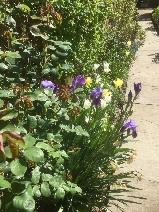 Elsewhere the tulips have been joined by irises. These came from a friend when we moved here so have been in the ground for four years and I have an urge to divide them. That’s going on the jobs to do list.