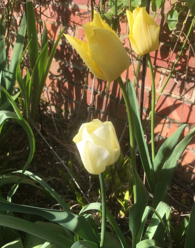 Last week’s ‘World Friendship’ tulips have been joined by something that was meant to be  ‘White Triumphator’ but which doesn’t look very lilly flower like to me.  More gardening mysteries!