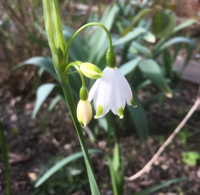 I was very delighted to see that my leucojum aestivum, aka summer snowflake, are finally in flower.  I dutifully stuck to the recommended planting distances and now I have five rather lonely looking snowflakes.  Here’s hoping they will clump up over time.