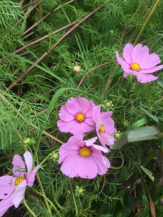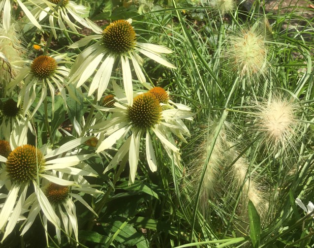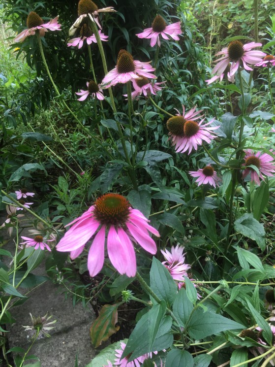 The coneflowers have twirled themselves around in the wind, just about remaining standing. They deserve a sunnier spot and I hope to oblige in this autumn’s re-think.