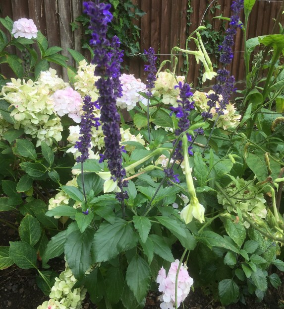 Ellen, Francis and next to arrive Gerda: I write this blog for you. Ellen and Francis have deluged the garden with rain, blown down my neighbour’s fence panel – again, flattened the ageing sweet pea wigwam and pushed everything else this way and that. It feels more like November rather than the last days of summer. When will Gerda arrive? Let’s hope there’s a break for a while as this week’s brief respites have not coincided with my gardening time. I need to do some end of summer sorting out. Here’s six from a battered garden.