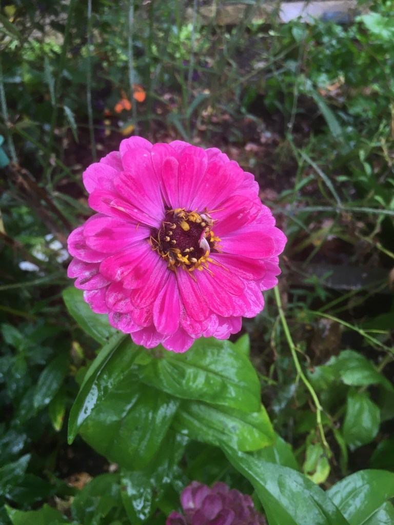 Zinnias are just surviving the regular downpours of rain. It hasn’t been the best weather for them but the occasional flower braves the showers.