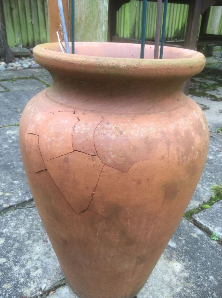 A much loved pot that has been with me for many years now has a crackled look. It is home to some fabulous lilies. I could break the pot up and replant the lilies but first I am going to see if I can repair the damage with some milliput terracotta repair putty. Ever the optimist I think!