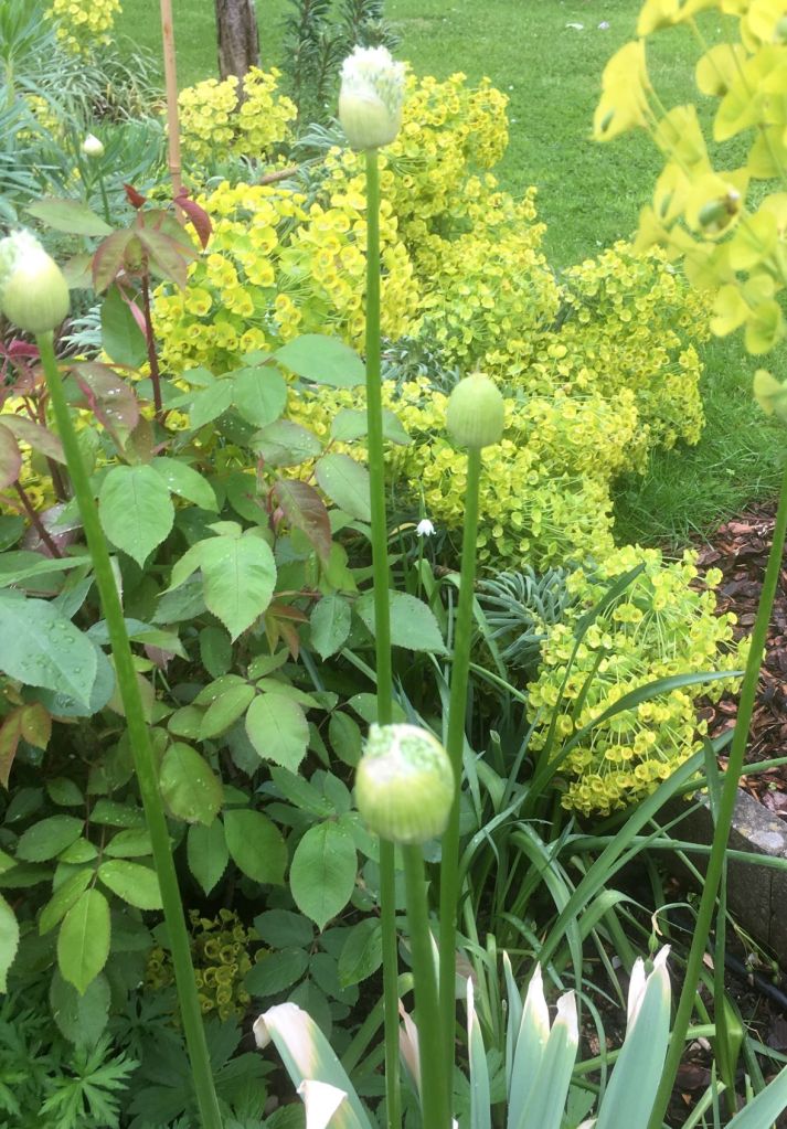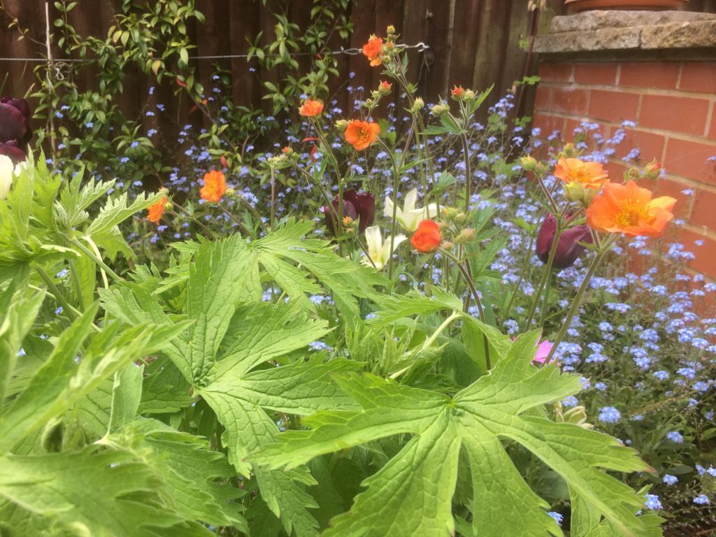Several weeks after many SOSers were showing the geum ‘Totally Tangerine’ mine have finally flowered. I acknowledge they are in cooler part of the garden, which unusually still has a few tulips just about in flower.