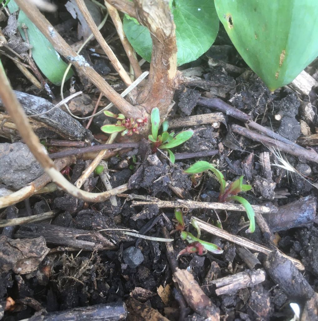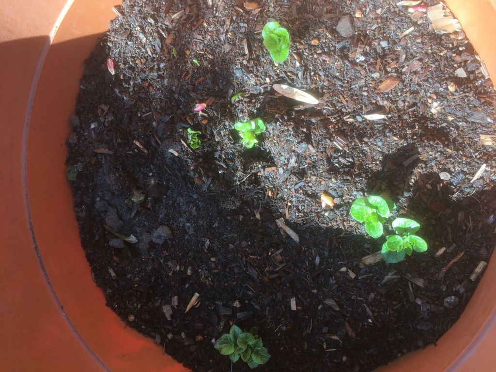This is the area set aside for a cutting patch. I have planted out dahlia cacti mix and have some china asters – free gift seed packet – to go in this weekend. I have direct sown calendula ‘Indian Prince’ and malope trifida ‘Vulcan’, also a free seed packet. Unfortunately the seedlings hell bent on growing are those from a packet of radish seeds that I knocked over and the thousands of seedlings that didn’t get killed in the less than hot compost heap. I spread a good thick layer of said compost over this bed for the winter and this week the seeds have surged into growth. I doubt they will be anything to be welcomed.