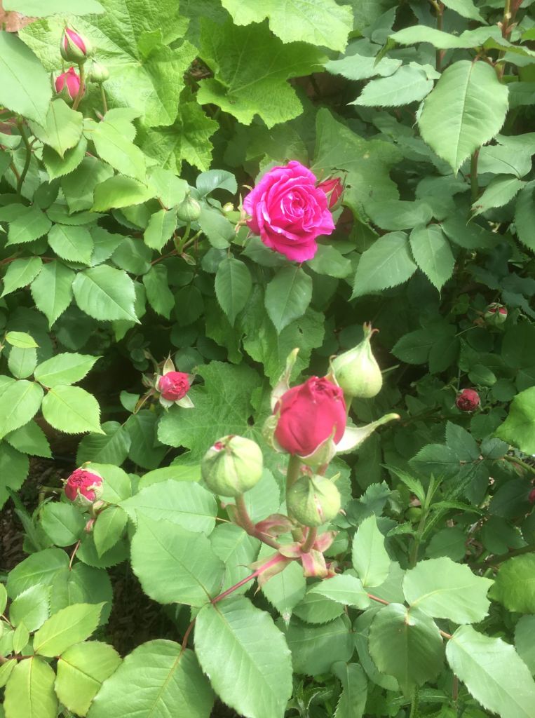 Warmed by a few days sunshine, the roses are beginning to unfold. This is r. ‘Madame Isaac Pereire’ and was planted out in the winter of 2018. It is full of bud and I can’t wait to see it in its full glory in the coming weeks.