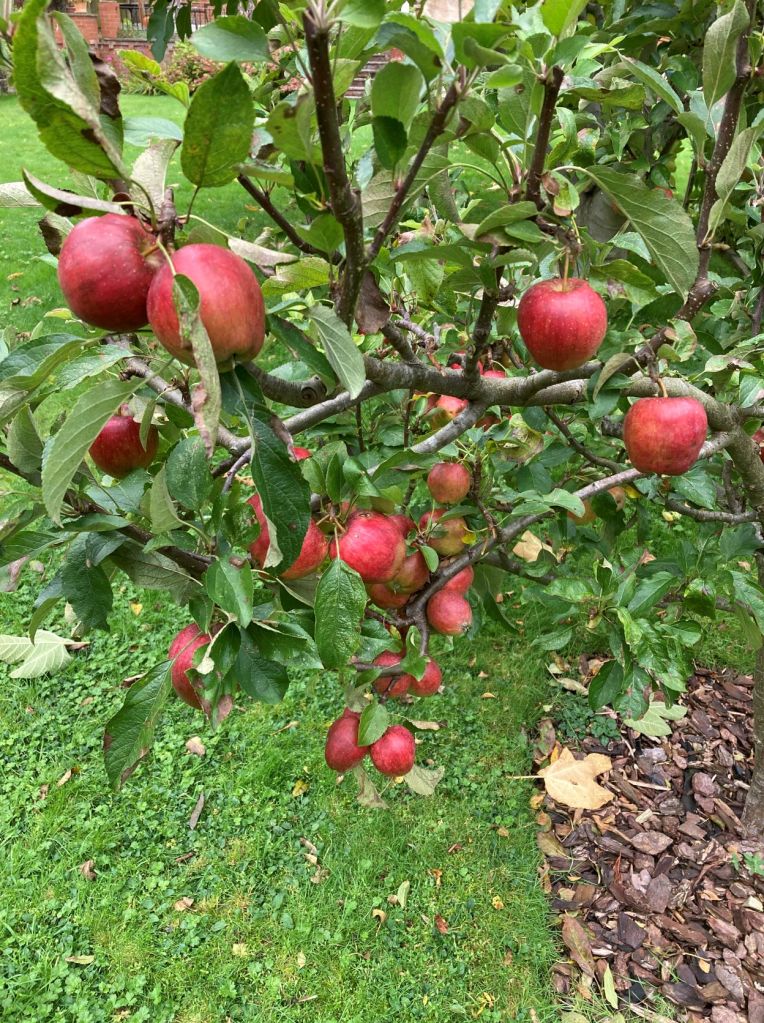 The last of the apples were picked a week ago. They are Braeburns and have given us crisp and juicy eaters. There were several small apples, a result of my less than ruthless thinning I’m sure, and generously I made up some apple feeders for the birds. They have been utterly spurned. Not pecked, not rumbled by the squirrels, left untouched. I suspect my neighbours of having higher quality bird food available.