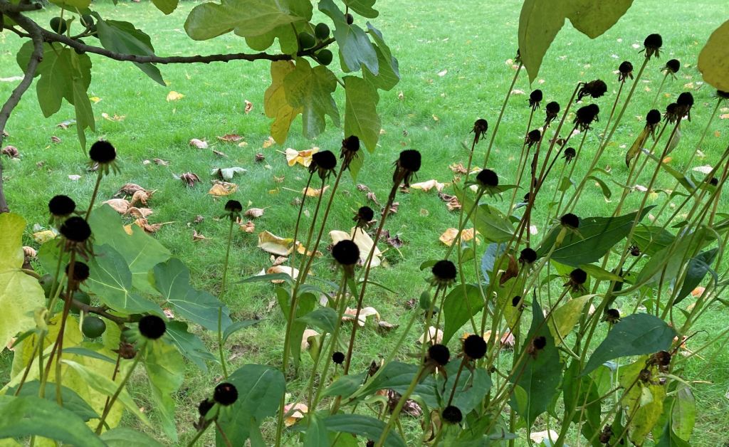 The seed heads of the rudbeckia always look dramatic at this time of the year and will be left standing through winter.