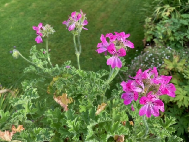 I have been cutting back the scented leaf pellies before bringing them into the greenhouse. This one was grown on from cuttings I took when they came out for the summer. It’s still flowering and so I keep pushing my luck and have left it out for this weekend. But next week the deed will be done and all the pellies will be inside again for the winter.