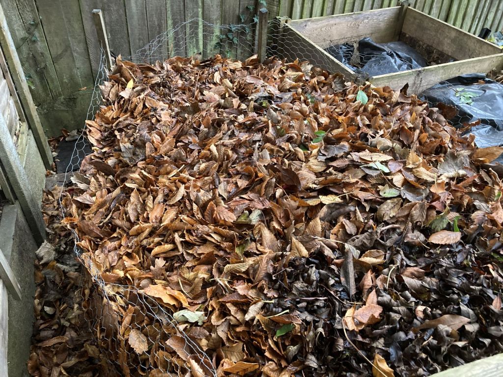 The vast majority of the leaves are down now, thanks in part to Storm Arwen which blew through last week. The leaf cage is full and these leaves will sit here for a year. They will be just about ready to use as leaf mould by next Winter. It is used to mulch the blackcurrants and raspberries.