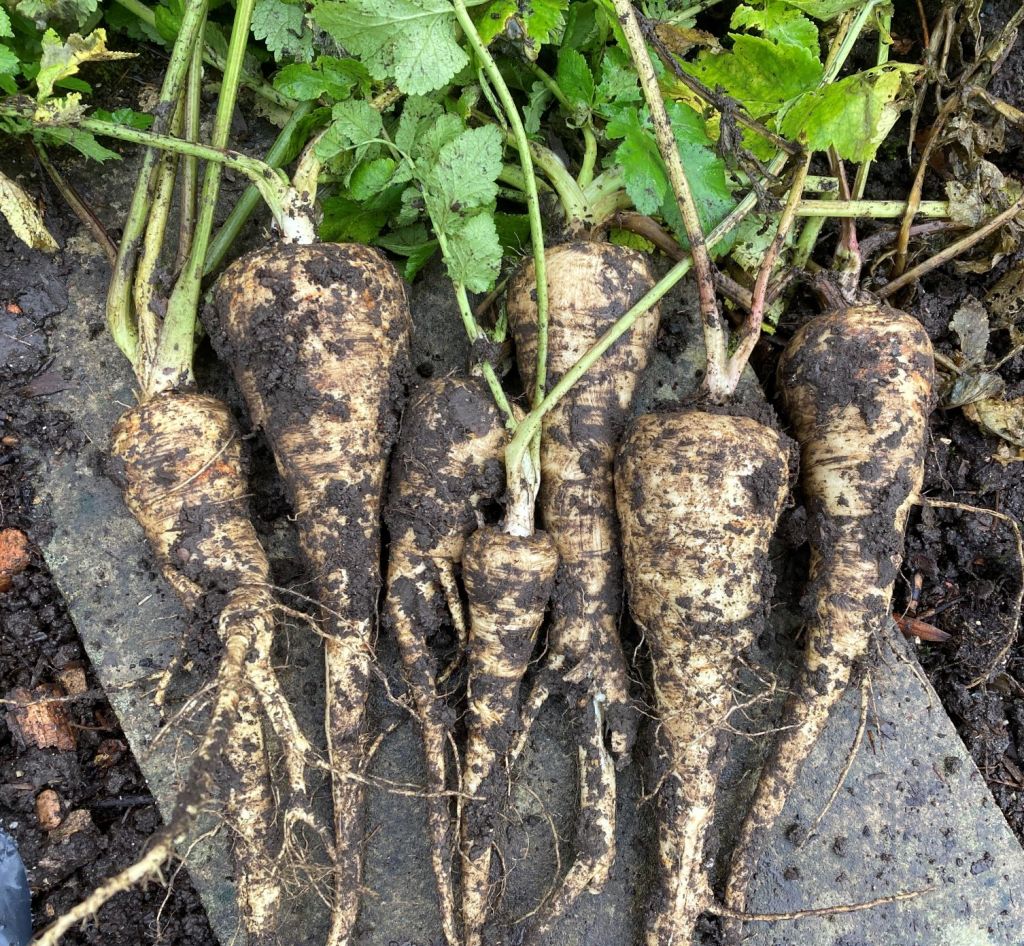 Just a quick update on the digging of the parsnips. Here they are, straight from the ground and then after a quick scrub up. The variety is ‘Tender but True’. Yet again not a very successful germination from the quantity of seeds sown but just enough for Christmas lunch. Wishing everyone a peaceful and healthy 2022.