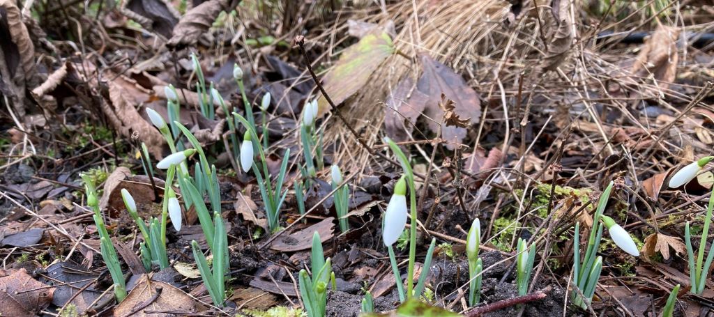 Snowdrops and hellebores continue to fill out. I spotted some leaves from the tête-à-tête daffodils and the odd tulip leaf is making an appearance. The primroses bear the promise of spring beautifully: cheerfulness abounds.
