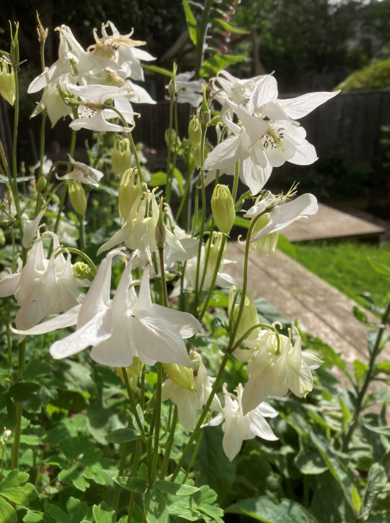 Lastly some very pretty white aquilegias. These are also growing at the back of the garden in the shade. The sun arrives here some time around 4pm at the moment. They are looking so good now. They should then be followed by a white thalictrum – watch this space!