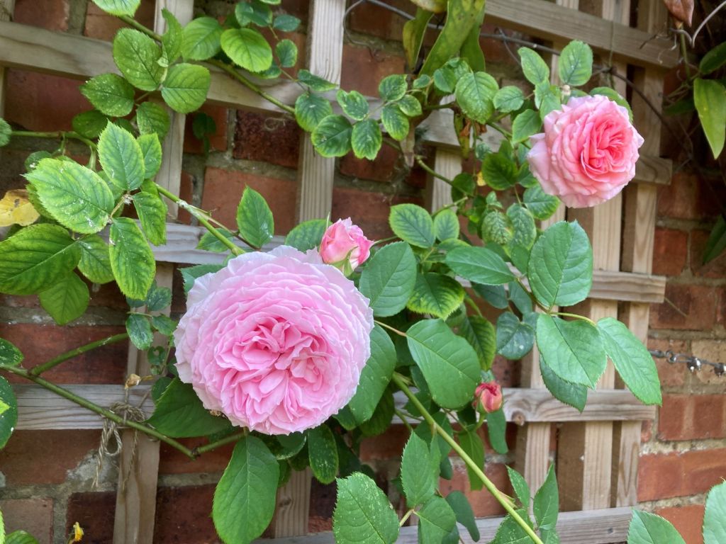 Another rose: The climbing ‘Blush Noisette’. This is about five years old and has successfully covered the wall. Deadheading it is a challenge and I am never quite ruthless enough in pruning it. But it doesn’t seem to care too much.