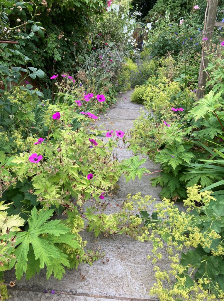 The lawn. Over at Chatsworth the drought has revealed an intricate eighteenth century garden design. Here it’s an old garden path which strangely seems to start half way down the lawn. Lawn is a grand word for this motley sward of yarrow, clover, buttercups, daisies and dandelions. I hope it will recover.