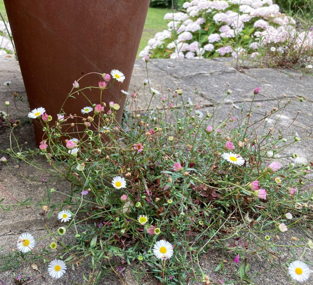 Japanese anemones, ‘September Charm’ amazingly in flower in mid July and now also rather crispy around the edges. A deluge from the watering can may have saved it.