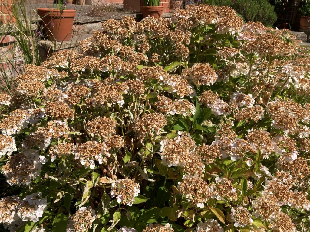 As predicted the hydrangeas scorched. They are in sun for half the day and rarely do I get away without some scorch over the summer.