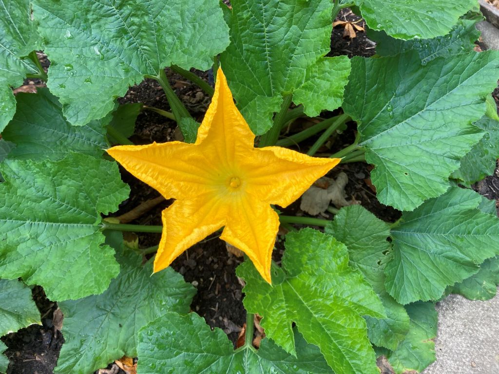 Dahlias. Not a fan, but somehow I always have a few in the garden. This one was grown from seed last year and the tuber left in the ground over winter. I prefer the simpler variety. It has perked up considerably after rainfall.