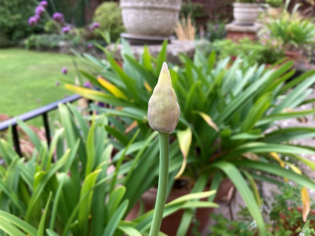 In a strange out of season quirk, also I suspect due to the summer weather conditions, I have a new flower spike on the evergreen agapanthus. It will be a late treat if it manages to open out.