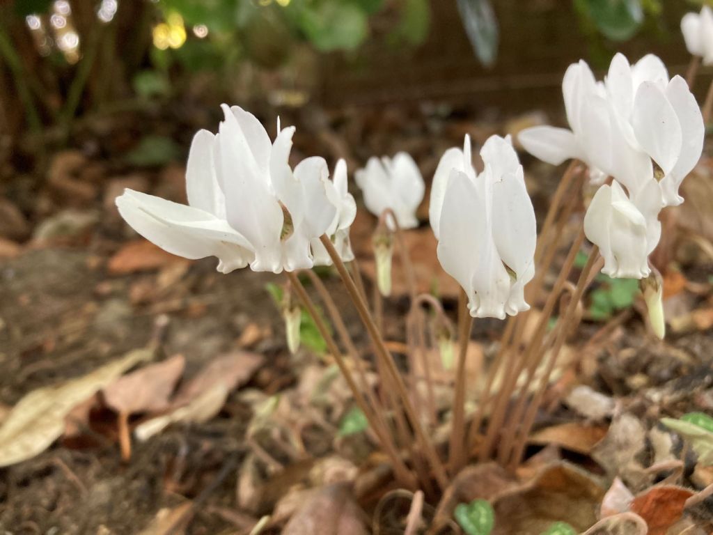 In more seasonal growth the cyclamen hederifolium have demonstrated their resilience. In a truly neglected corner of the front garden in dry shade they have produced these delicate flower heads. Small but perfectly formed. Lovely.
