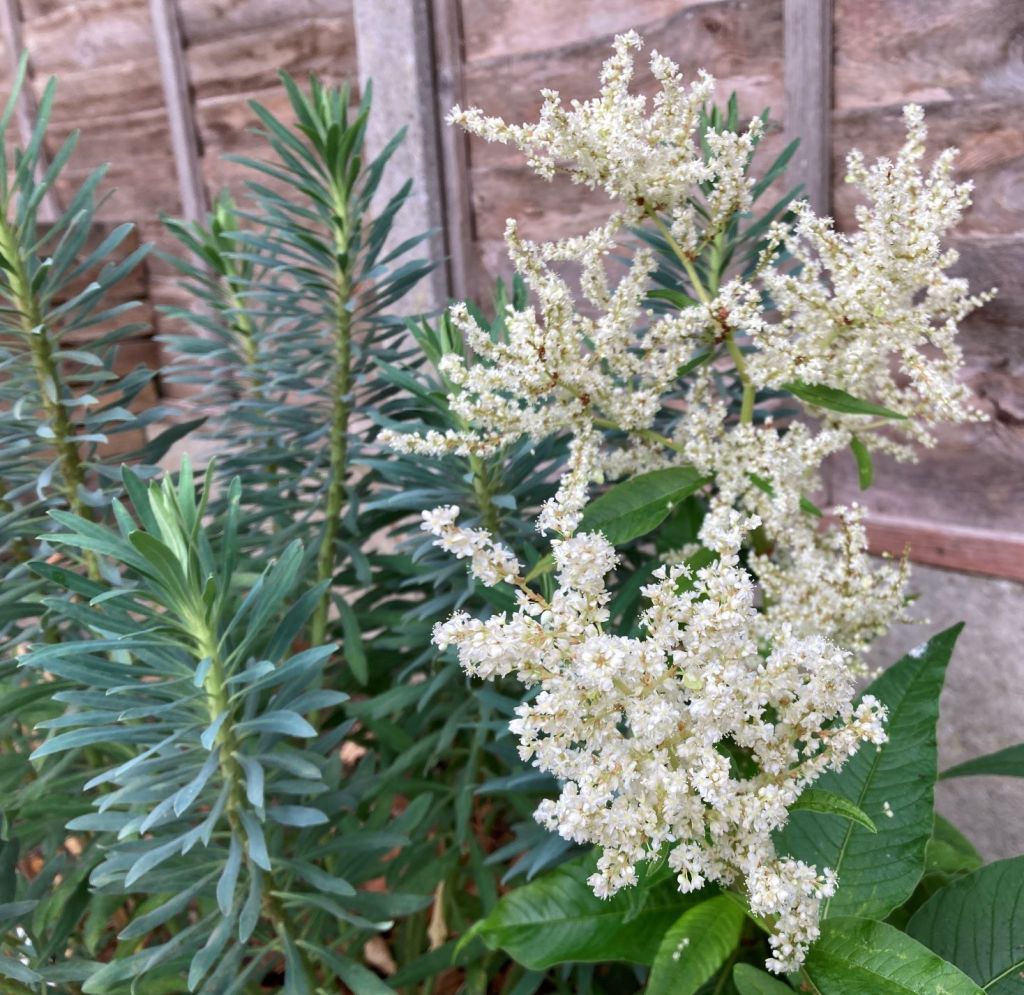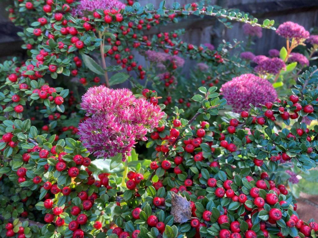 Drought has affected the height of the autumn stars. This sedum is about half the height it normally reaches but it did survive unwatered so I won’t complain.