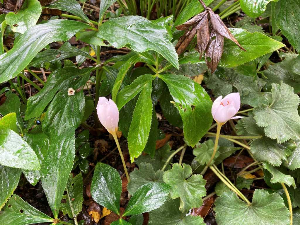 I took a photo of these autumn crocuses immediately I spotted them. I am sure they are no longer there, victims to the the rain and the slugs no doubt.