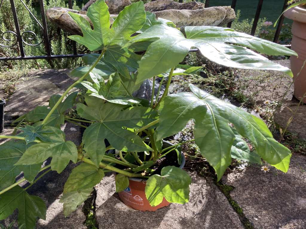 I have finally settled on fatsia japonica to replace two lost skimmias. I hope I have cleared enough space for its eventual height and width but I guess it will take some years to fill out.