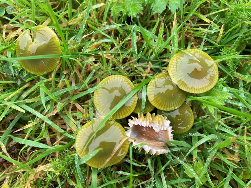The lawn is in need of a last mow but the weather is against it. In the meantime it is fungi time, these are glistening quite weirdly in the rain, looking like something from the depths of the sea.