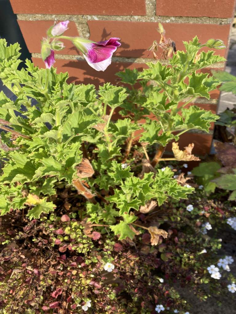 I have yet to plant out the winter bedding and with the first frozen bird bath of the winter I know I must get my skates on. The pellies are putting out the odd flower and the bacopa goes on and on. But I will sort these pots out this weekend.