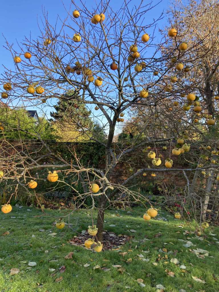 The leaves have fallen and revealed the fruits on the persimmon tree once again. There were so many fallen fruits this year but still there are plenty to go round. I am expecting the parakeets to arrive soon.