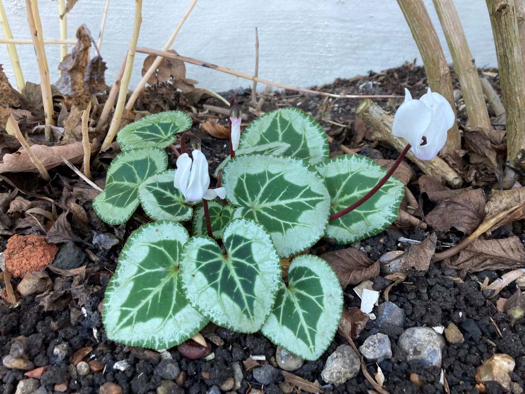 The plant identifier did have a suggestion for this one and told me it was cyclamen persicum, the florist’s cyclamen. I thought I’d planted c.hedifolium here. Is it easy to tell the difference? I thought c. persicum was not hardy and these have been in the ground for several winters. All thoughts welcome.
