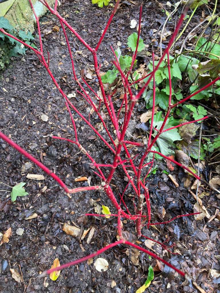 Lastly some cheery red from the stems of cornus alba ‘Sibirica’. I planted this in 2021 and it is making slow but steady progress. I am slightly worried for it though as it is planted in the border that has (had?) honey fungus. So far it doesn’t seem to have been affected although the RHS indicates that it may be susceptible. I wish it well.
