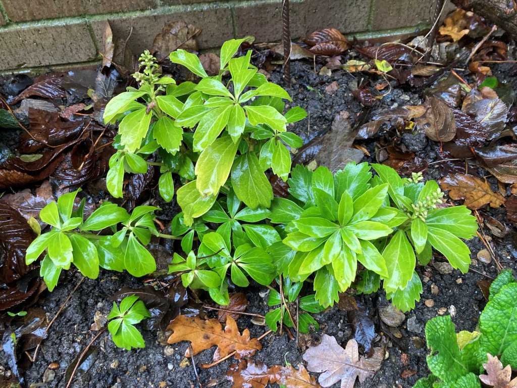 This comes with a warning of rampant spreading. Pachysandra terminalis. I have two plants in a thin border at the back end of the garden and if they spread I will (I think) be very happy. I have not chosen successfully here in the past, so here’s hoping they will settle in well.