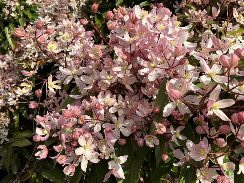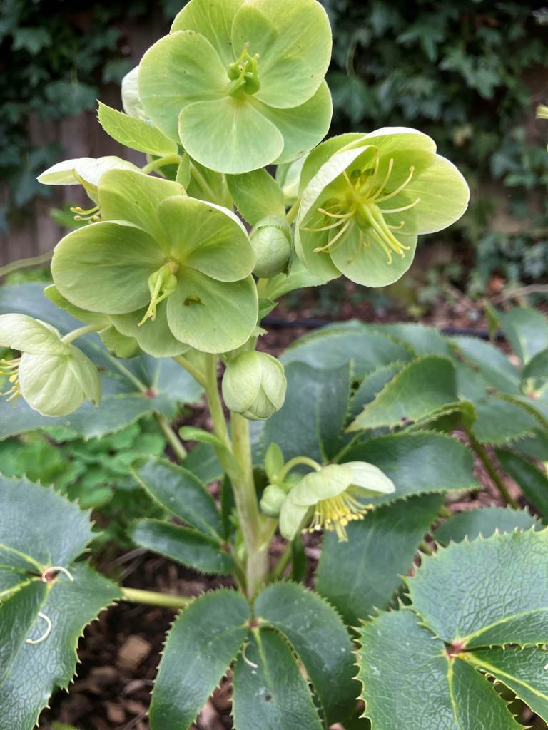 A few weeks back I showed the bronzed foliage of the old leaves of an epimedium, promising that I would be cutting them back to reveal the new growth. No, wasn’t done, too much rain, didn’t have the time and so here it is again with flowers – epimedium x versicolor Sulphureum. As you can see, this week I have been checking my notes in order to bring you the full names.