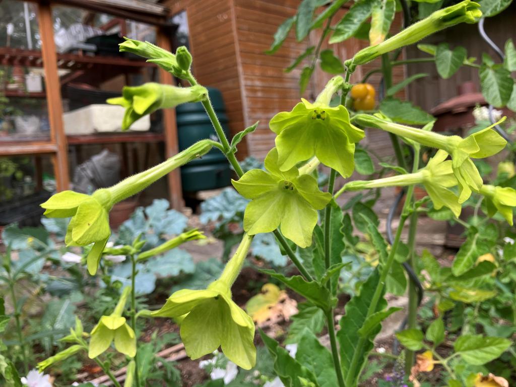 Lastly, and as I am on the topic of seeds. Here’s some nicotiana ‘Lime Green’. They come to me courtesy of the compost heap contents that were spread over the veg patch earlier in the year. The heap is three years old. I never know what surprises it will deliver but this was quite a good one, mixing in with the tomatoes.