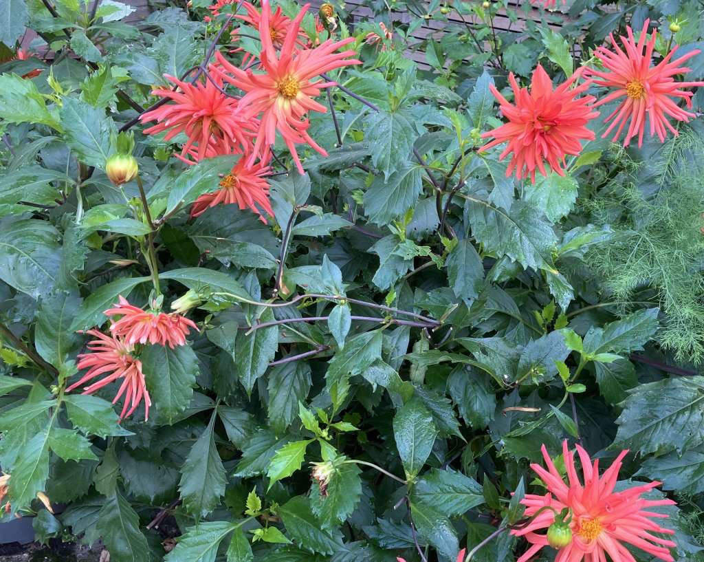 Lastly, I’m going back to the cactus dahlia because it is a firework of orangeness at the moment. It’s down at the shady end of the garden and looks much better in the afternoon sun.