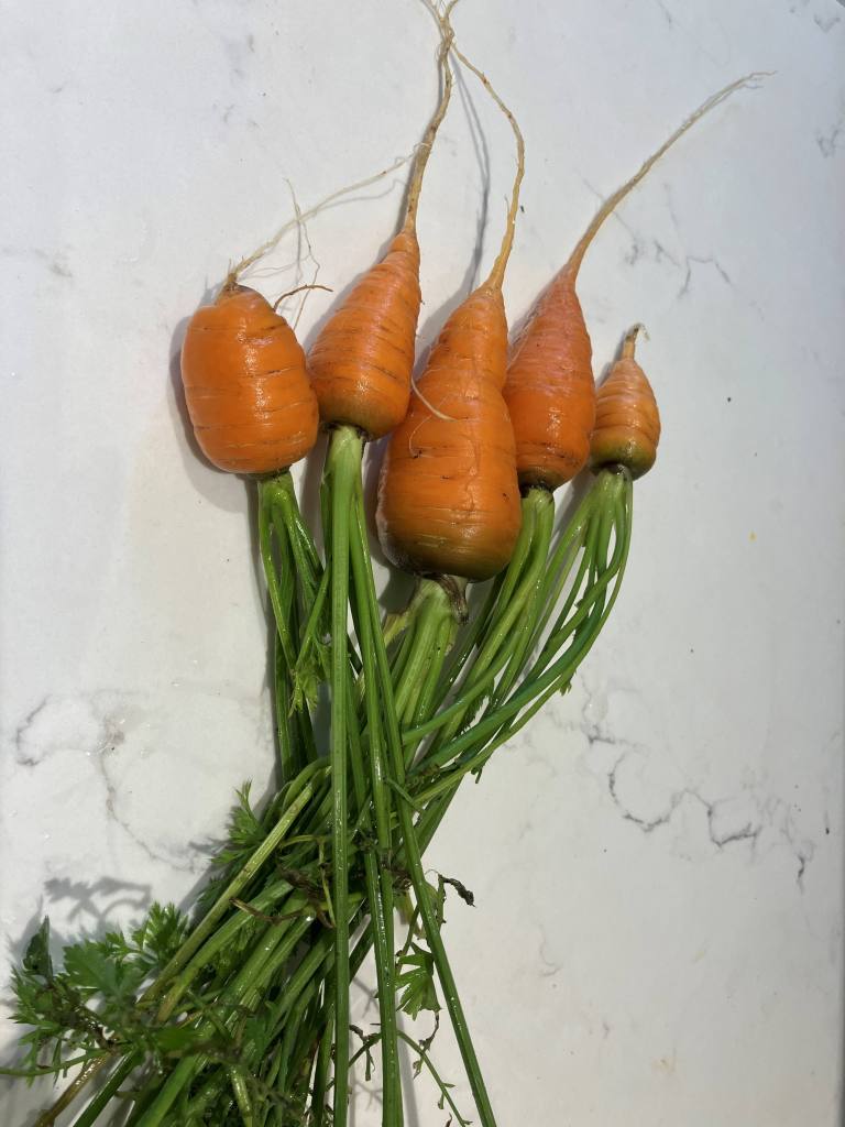 I’ve called time on the tomatoes, blight finally got to them. But there is a good quantity ripening off inside. Not such a good quantity of carrots though! These are chantenay, so the shortness is good, but the germination was not.
