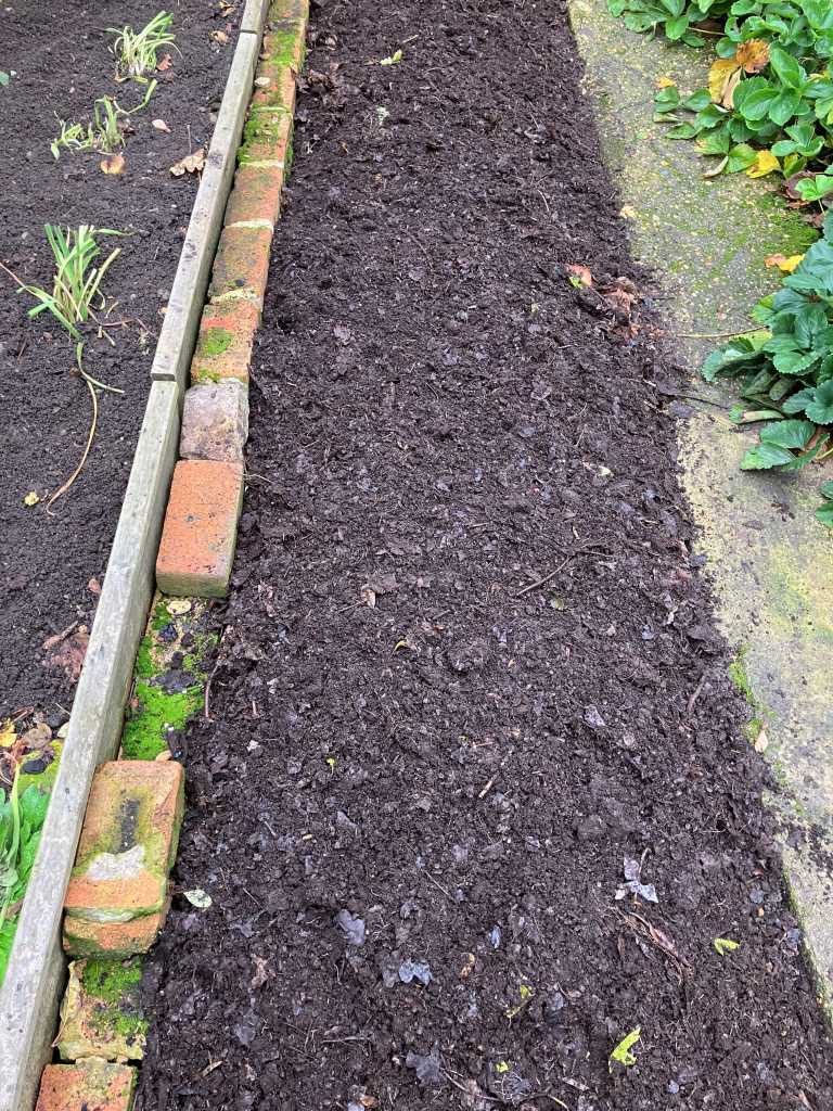Last season’s leaf mould did not go very far. I decided to cardboard over one bed in the veg patch and use the leaf mould to cover the top. Since achieving this neat finish the foxes have had fun and have dug down to find the cardboard and have shredded it. I reburied it all again. I can see this could go on!