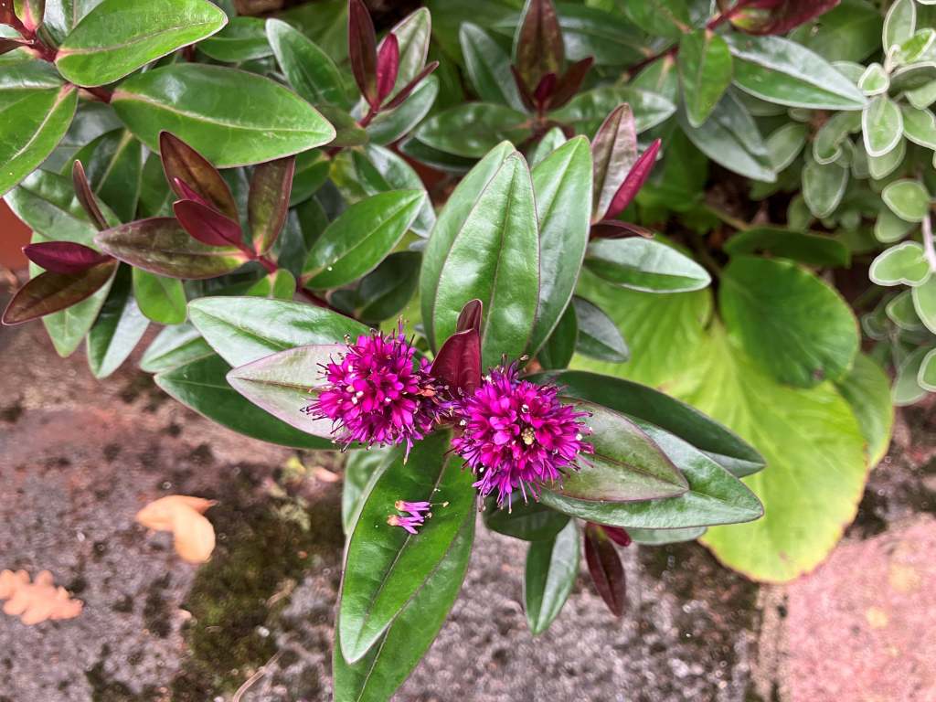 This is an interesting one, even though it is only a hebe. I moved this a couple of years ago to the back garden. It settled in but lost its dark leaf and then flowered white. It has now re-appeared in its original location with the dark leaves and the original purple flower. I’m leaving it where it is. Nature knows best.