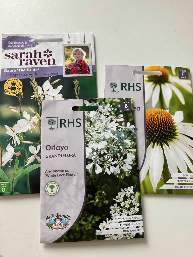 Jobs to be done: I have been buying bulbs and a few packets of seeds. I didn’t manage to plant the camassias last weekend, prepping the ground took me up to the point when the rain came down again. So my last six for this week was going to be the bulbs, but I’ve lost them! In the shed? I hope so. In their place I offer you my seed choice, still unsown. I really was going to sow, at least, the Orlaya last week. Where does the time go?