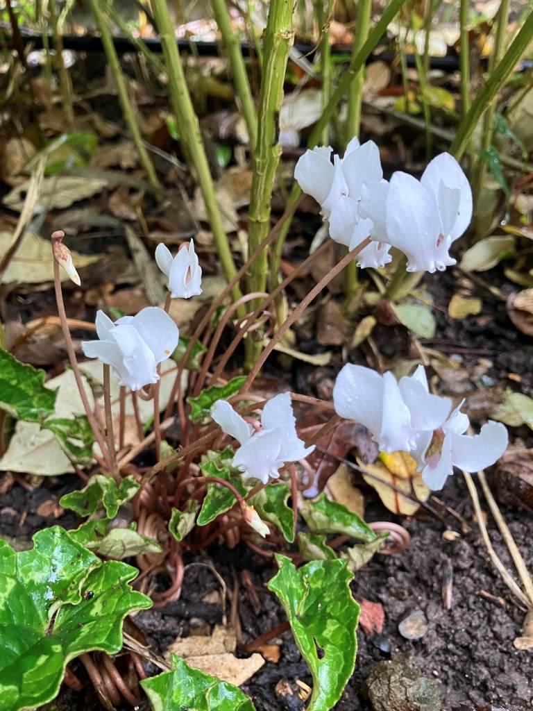 This is the one that did it. I have always envied my neighbours spread of cyclamens that sprinkle themselves around like jewels at this time of the year. The flowers are tiny but stunning. While searching for six lovelies for this week I found this small clump in my garden. Self seeded from over the fence. Do I thank the birds or the wind? I don’t know how long they will take to spread out in this garden but I can be patient.