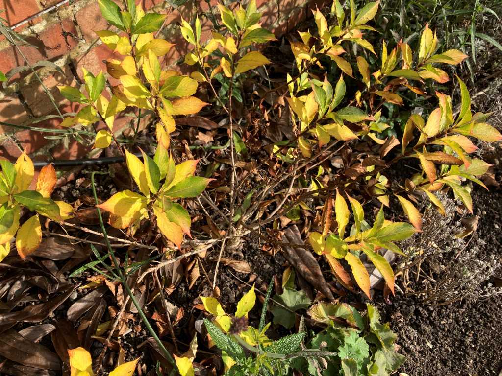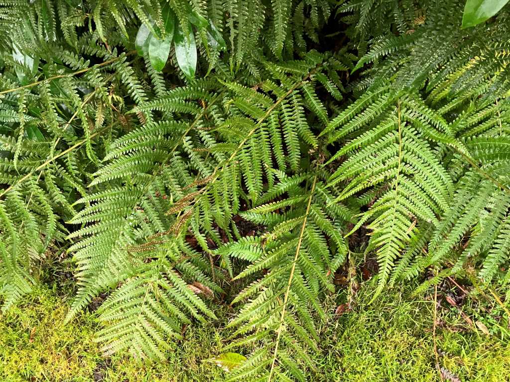 And still looking quite green, these ferns are in the shelter of the larger rhododendron. Dryopteris filix-mas possibly. I inherited them so I’m really not sure.