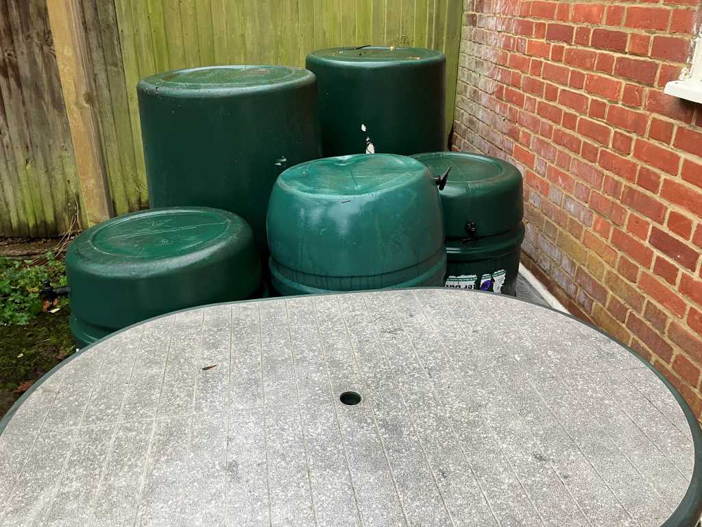 The water butts have all been emptied of their contents now and are huddled together in a corner. I’d hate to see these rolling across the garden.