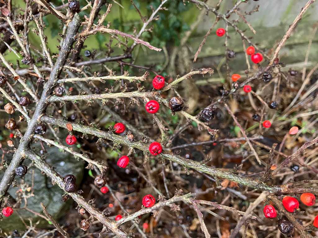 I have been meaning to share the cotoneaster horizontalis for some weeks now and as you can see I should have done it sooner. The positive thing is that the birds have been enjoying the berries.